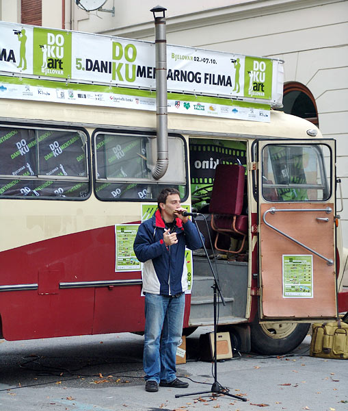Na predstavljanju su bili prisutni organizatori DOKUart-a te predstavnici Grada Bjelovara, na čelu s gradonačelnikom Antunom Korušecom. U DOKUbus-u će se BESPLATNO moći pogledati filmovi koji su na prethodnim Festivalima bili hitovi, a moći će se kupiti i ulaznice za večernje projekcije.
